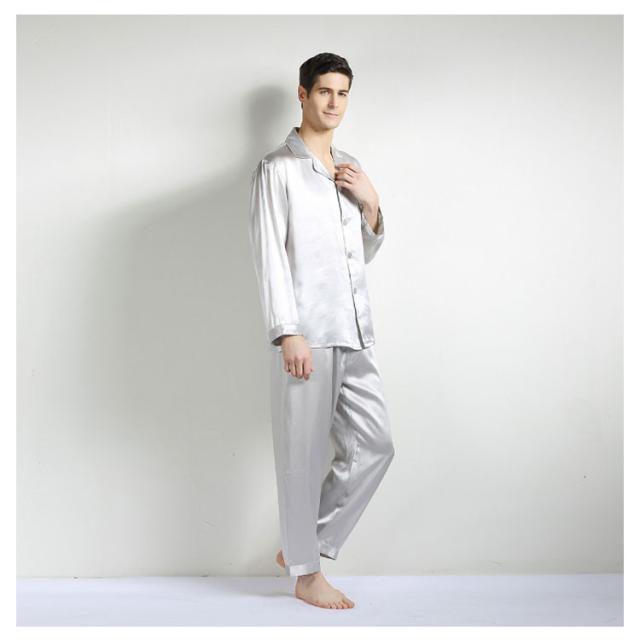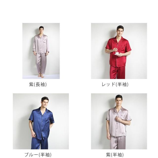 | シルクライクな光沢で高級感のあるパジャマでギフトに最適。 シンプルなデザインですが、天然絹100%の肌触り絶妙なぜいたくパジャマです。 上品なイメージを醸し、大人男性にもおすすめできるアイテムです。 長袖と半袖をご用意します。オールシーズン快適にお使いいただけます。 | |