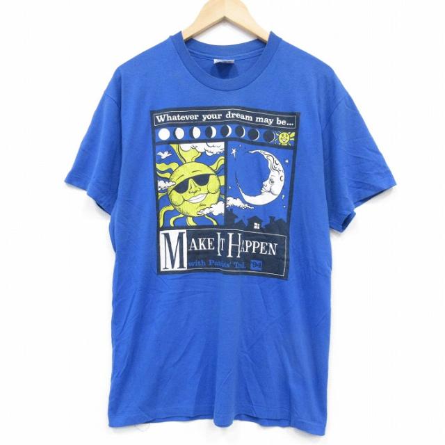 古着 ヘインズ Hanes 半袖 ビンテージ Tシャツ メンズ 90年代 90s 太陽 月 クルーネック 青 ブルー Lサイズ 中古 中古 古着