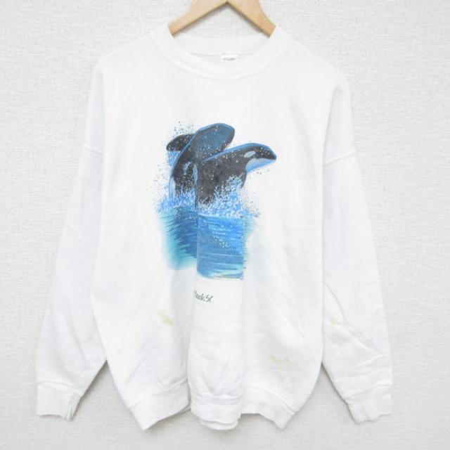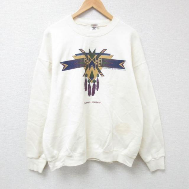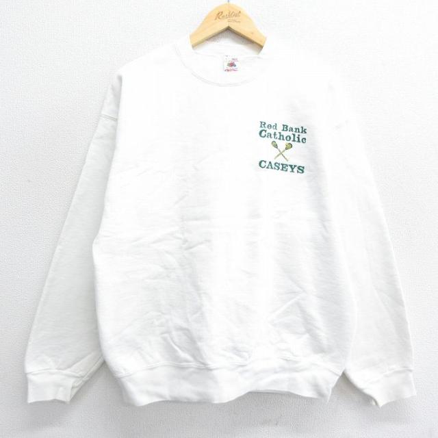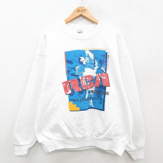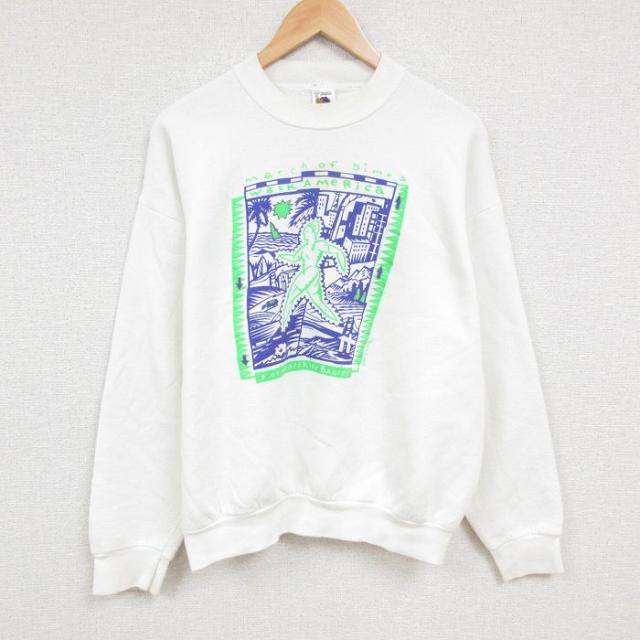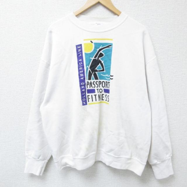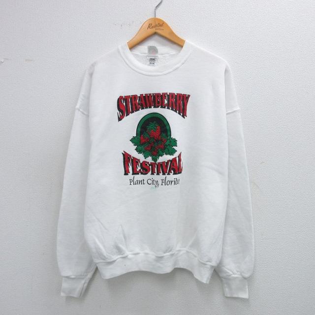 古着 フルーツオブザルーム 長袖 スウェット メンズ 90年代 90s いちご フェスティバル クルーネック 白 ホワイト XLサイズ 中 中古 古着
