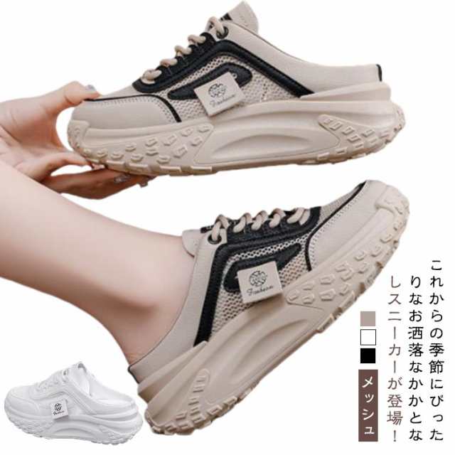 かかとなし 踵なし メッシュ スニーカーサンダル 厚底 厚底スニーカー 春 プラット底 かかとなし レディース カジュアル 夏 メッシュスニーカー おしゃれ 靴 サンダル サボ シューズ 厚底サンダル 履きやすい 歩きやすい 通気性 スリッポン 黒 白 ホワイト