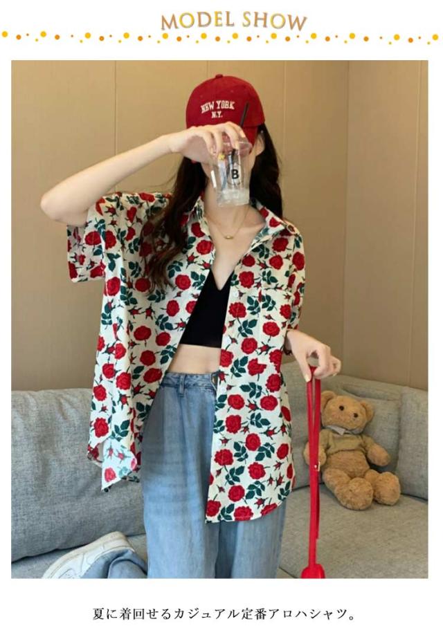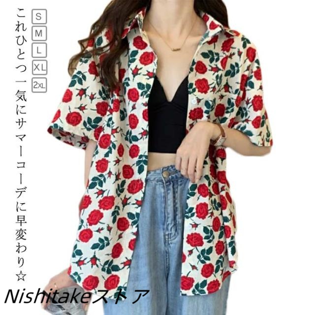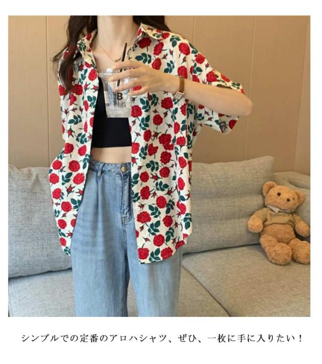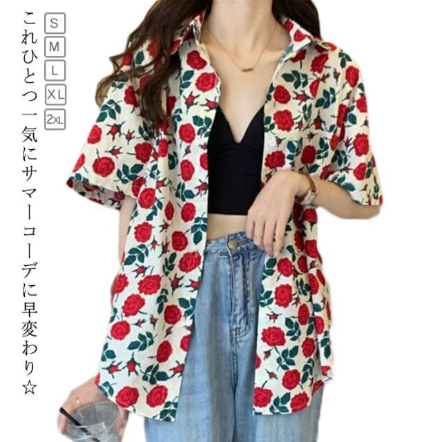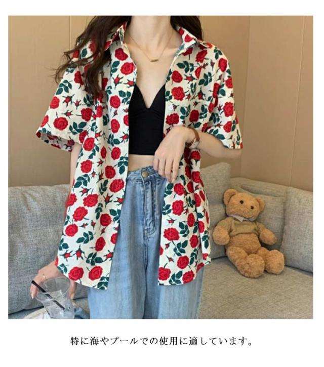 アロハシャツ ブラウス 花柄 レディース 浜辺 トップス ゆったり シャツ ボタニカル 前開き 羽織り ビーチ サマーウエア 五分袖 夏 ハワイシャツ プリント 薄手 カジュアルシャツ おしゃれ カジュアル 普段着 部屋着 リゾート 旅行 半袖 アロハ アロハシャツ 旅行