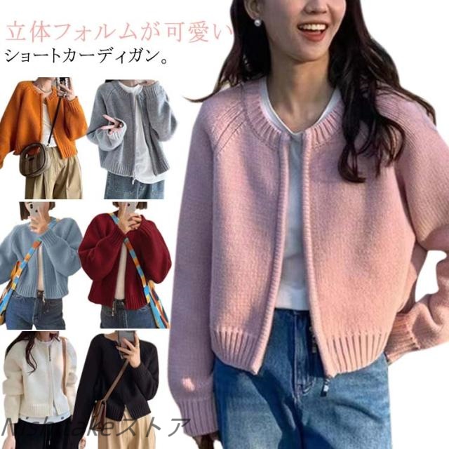 カーディガン レディース 秋冬 長袖 ジップアップ ニットカーディガン ショート アウター ニット セーター 厚手 ファスナー ダブルジップ カジュアル ジップカーディガン 羽織り 防寒 秋服 冬服 送料無料