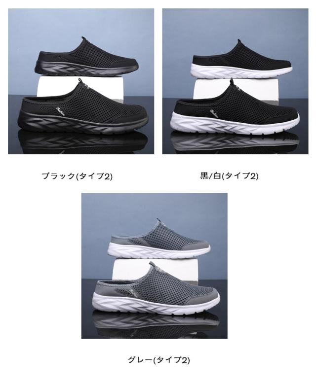 かかとなしスニーカー 夏 メッシュサンダル シューズ スニーカーサンダル かかとなしスニーカー メッシュスニーカー サボサンダル メッシュ 春 メンズ 靴 かかとなし スリッポン 防滑 軽量 通気性 スリッパ 軽い 外履き 部屋履き ベランダー履き かかとなしシューズ 父の日