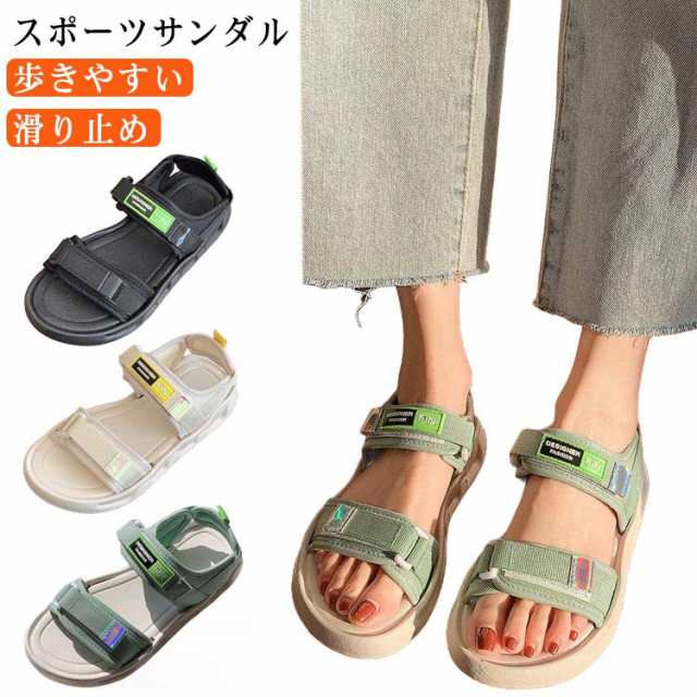 サンダル スポーツサンダル 履きやすい 歩きやすい レディース 海 サンダル フラットサンダル 海 痛くない マジックテープ サンダル 軽量 疲れにくい おしゃれ ストラップ ガールズ ベルクロ