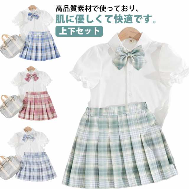 子供 キッズ トップス スカート チェック柄 スクール 制服 学生制服 プリーツスカート 女の子 子供服 フォーマルスーツ 可愛い JK制服 卒業 卒園 半袖 コスプレ 上下セット 中学生 小学生 仮装 セットアップ 夏物 インナーパンツ付き
