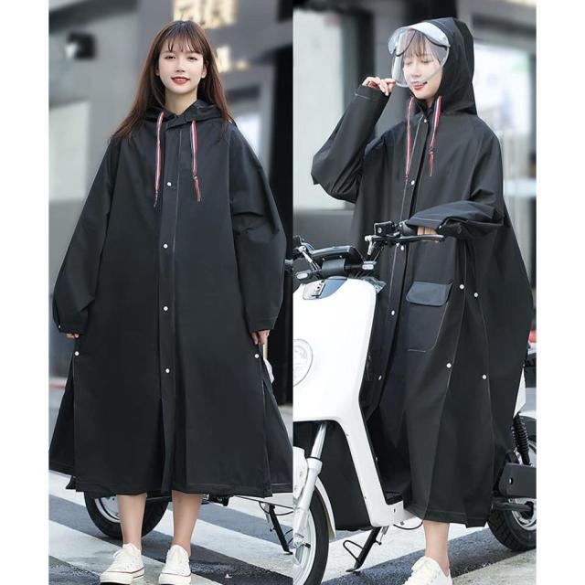 レインコート メンズ レディース 用 自転車 リュック対応 完全防水ファスナ一 大きな帽子 丈夫なバイザー ロング丈 軽量 通学 完全防水 防風 耐久性豪雨