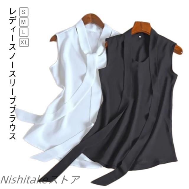 襟付き ノースリーブ ブラウス レディース 黒 白 シャツブラウス レディース シャツブラウスレディース ボウタイブラウス きれいめ リボン タンクトップ リボン ブラウス フォーマル 黒 白 リボン インナー トップス シンプル フォマール 通勤 OL