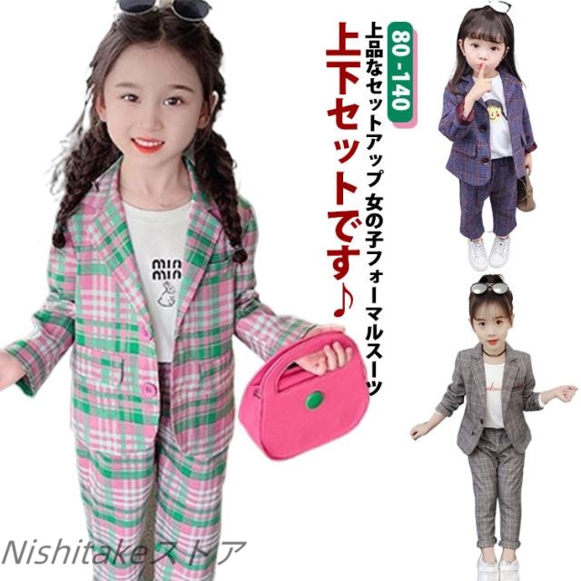 卒業式 女の子 パンツスーツ ガールズ ロング チェック柄 子供服 セットアップ 子供 卒業式 入学式 小学生 フォーマル アウター ジャケット パンツ 女児 女子スーツ ジュニア服 パンツスーツ ジュニア ズボン おしゃれ 発表会 七五三 入園式 卒園式 送料無料
