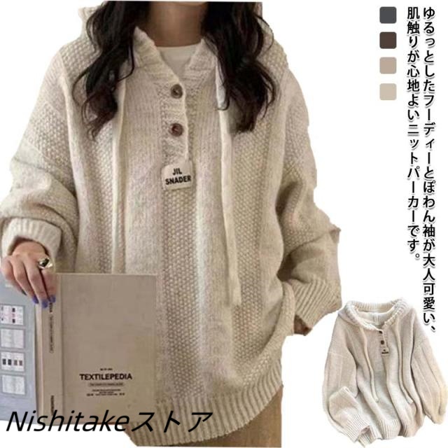 レディース もこもこパーカー ゆったり パーカー パーカー セーター ドルマン トップス 長袖 無地 秋冬 プルオーバー フーディニット ぽわん袖 ニット ニットパーカー 大きいサイズ 体型カバー 着回し 無地