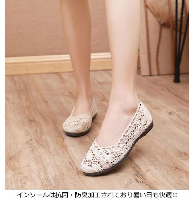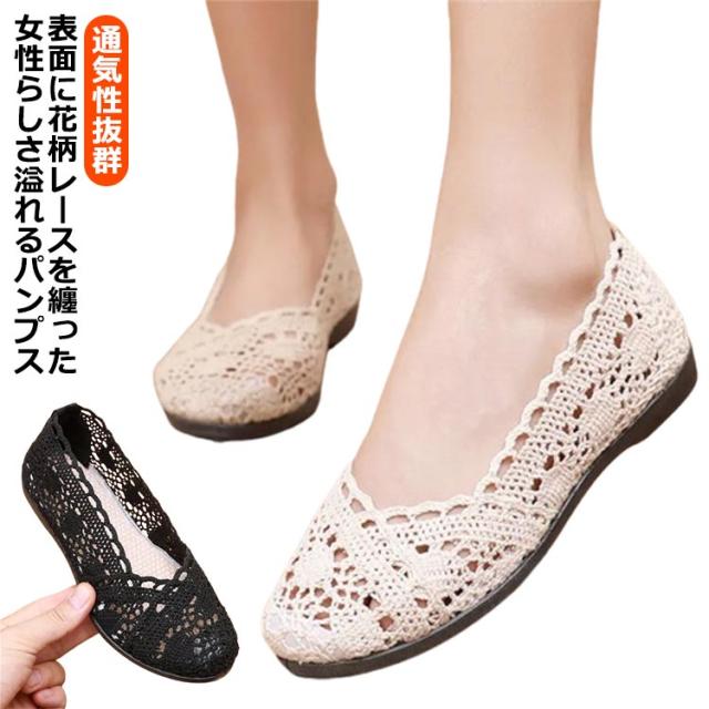 フラットパンプスパンプス 痛くない レース フラット ぺたんこ メッシュ パンプス 履きやすい レディース フラットヒール ローヒール 総レースパンプス 走れる 歩きやすい 通気性抜群 疲れない バレエ 夏 靴 レースパンプス 透け感パンプス オフィス 通勤 送料無料