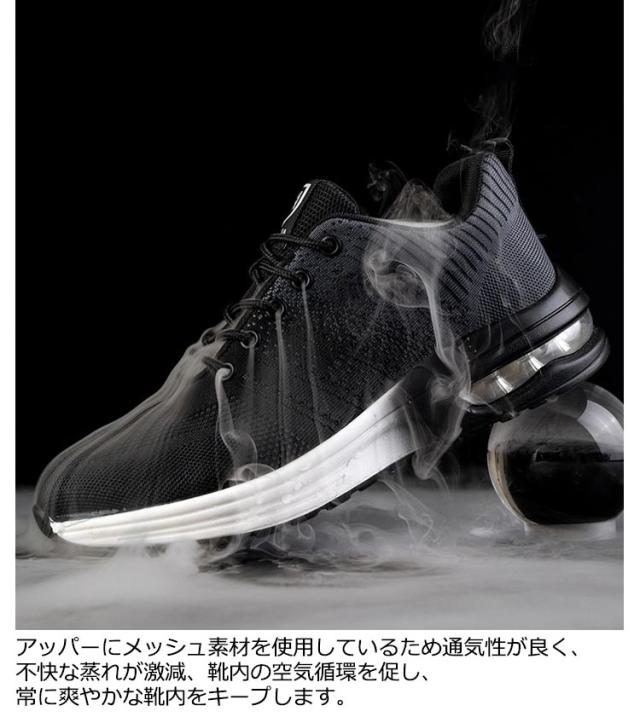 | 大人気の全方位の安全靴スニーカーの登場。 スポーツスニーカーのようなデザインを実現した、軽量化素材を採用し、長時間履いても疲れにくく、製造工場、現場工事、アウトドアなど様々な場合に活躍します。 アッパーにメッシュ素材を使用しているため通気性が良く、不快な蒸れが激減、靴内の空気循環を促し、常に爽やかな靴内をキープします。 つま先部分に鋼製の先芯を入れた、金槌や刃物などからつま先を保護できます。 靴底は防弾ケブラーミッドソールも入れた、釘などの鋭いものから足底を守ります。 ソールのヒール部分は、衝撃吸収性能に優れたクッション素材を採用。かかとの衝撃を吸収し、負担を軽減します。 底には耐摩耗性に強い素材を採用しており、地面との摩擦力を増やして滑り止め効果がより一層アップです。 | |