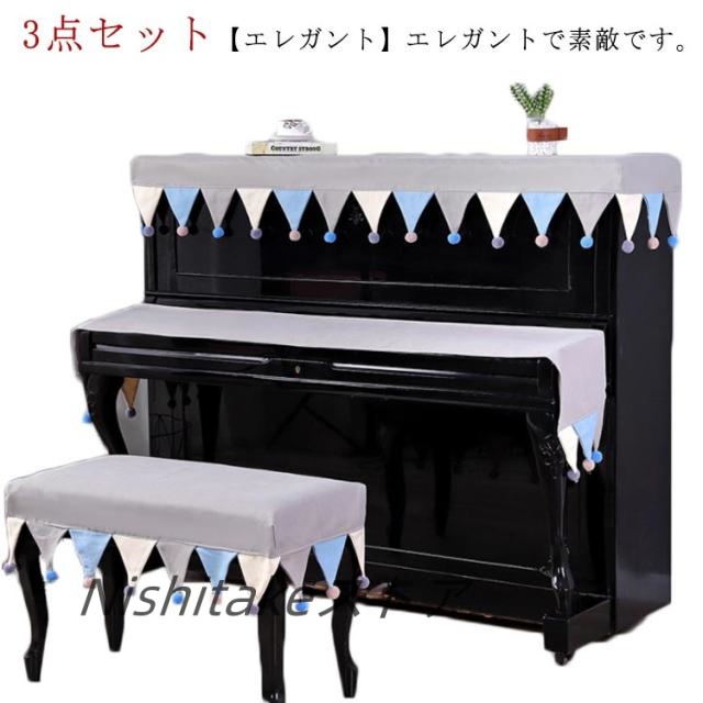 アップライトピアノカバー エレガント キーボードカバー 子供用 トップカバー 椅子カバー 電子ピアノ デジタルピアノ フルカバー フリンジ付き ピアノカバー 北欧 ヨーロッパ風 標準直立型ピアノ用 ピアノ掛け 乾燥 汚れ防止 便利 おしゃれ 高級感 3点セット