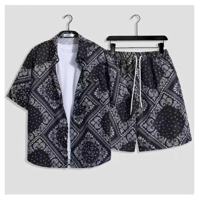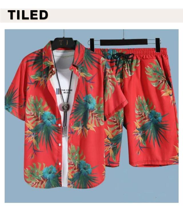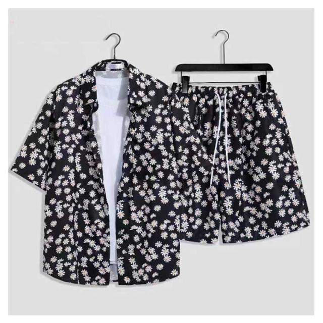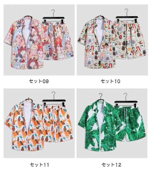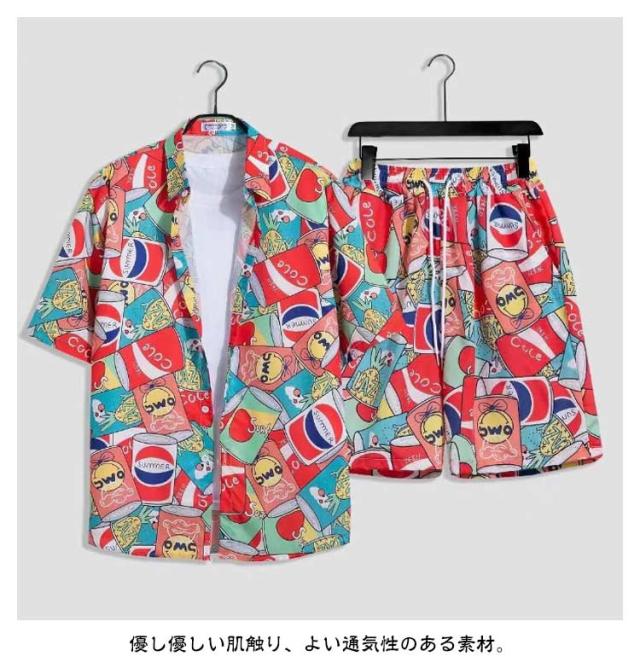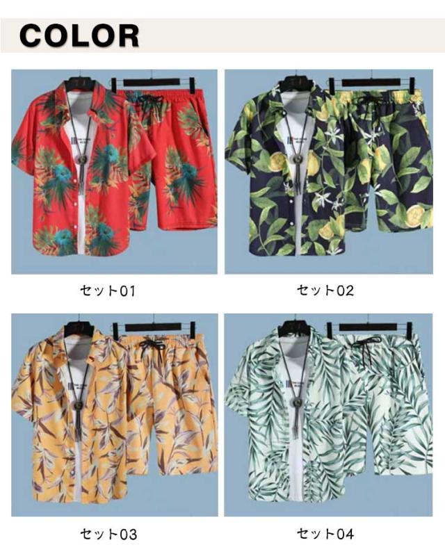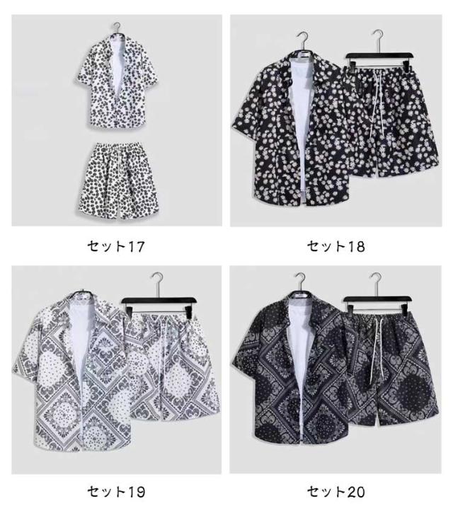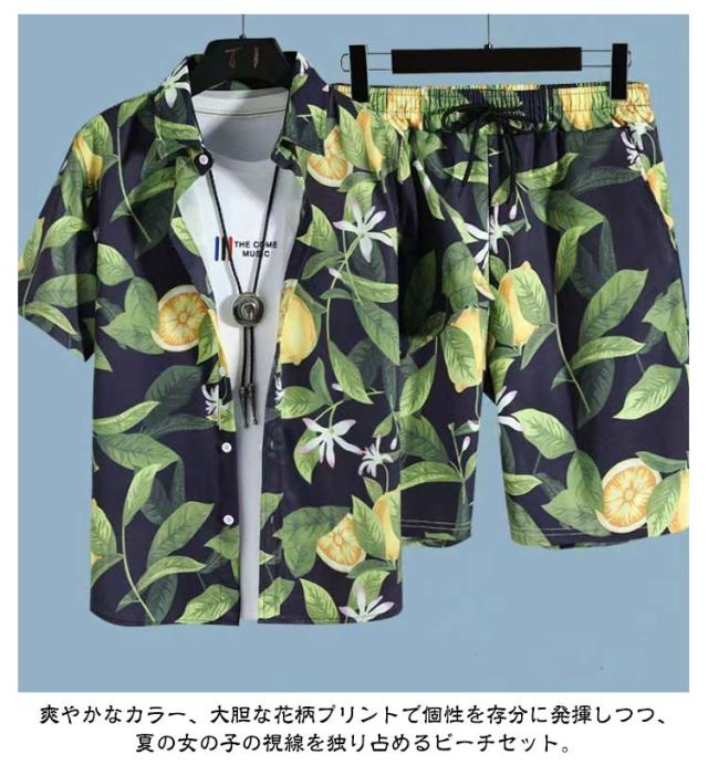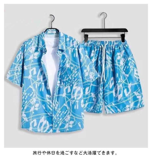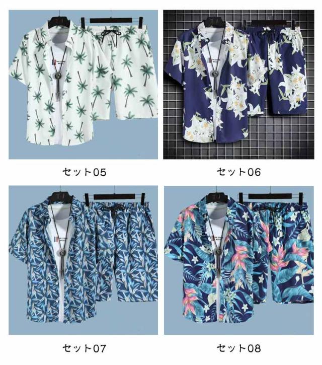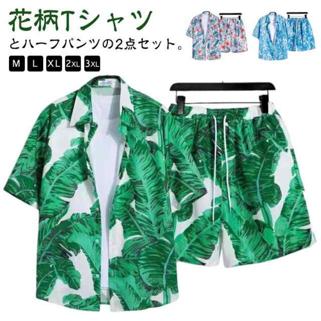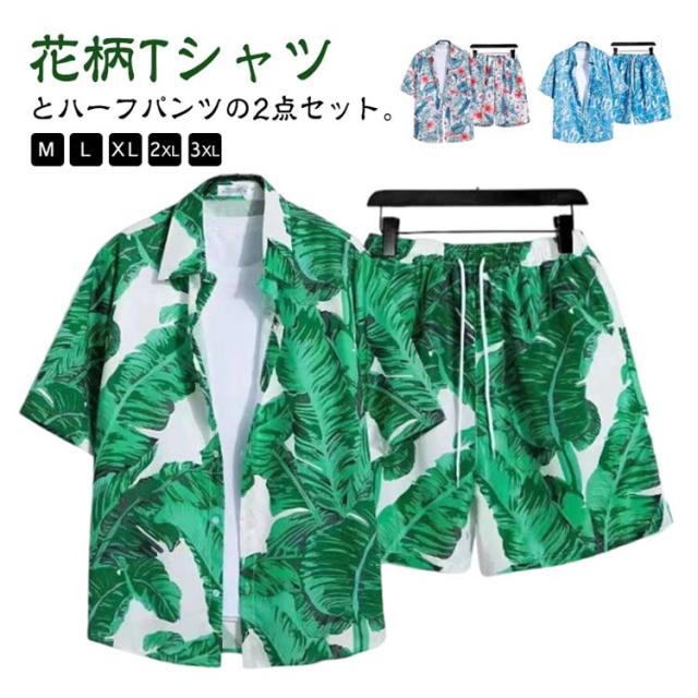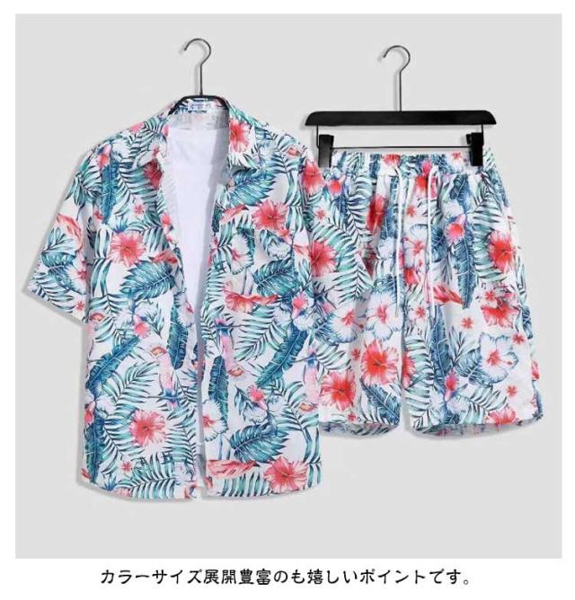 夏服 メンズ 花柄 総柄 上下セット 夏 セットアップ ハーフパンツ 半袖 ショートパンツ フラワー 2点セット シャツ トップス カジュアルシャツ 半ズボン ビーチウェア アロハシャツ+短パン 吸汗速乾 M-3XL 涼しい リゾート 海辺 サーフ系