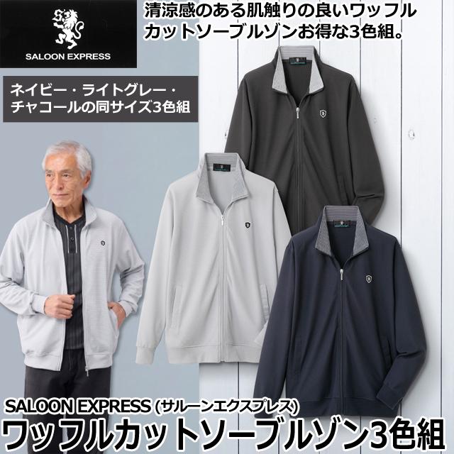敬老の日 SALOON EXPRESS(サルーンエクスプレス)ワッフルカットソーブルゾン3色組 メンズ 男性 紳士 シルバー 長袖 ファスナー前開き 清涼感