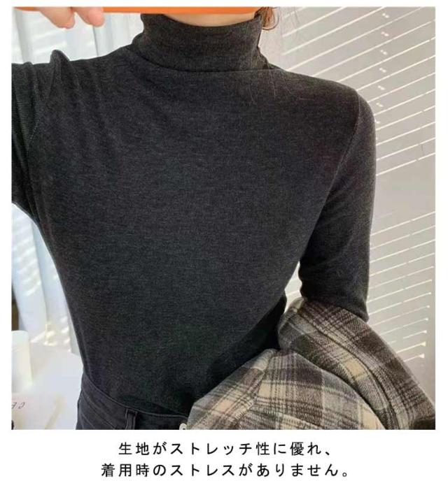 ハイネック インナー トップス Tシャツ 防寒 カットソー 長袖 プチハイネック ハイネック ストレッチ 無地 ロンT 大きいサイズ 暖かい 保温 ハイネックTシャツ シンプル カジュアル 春 秋 冬