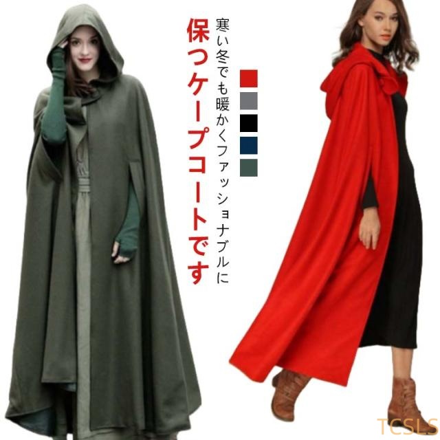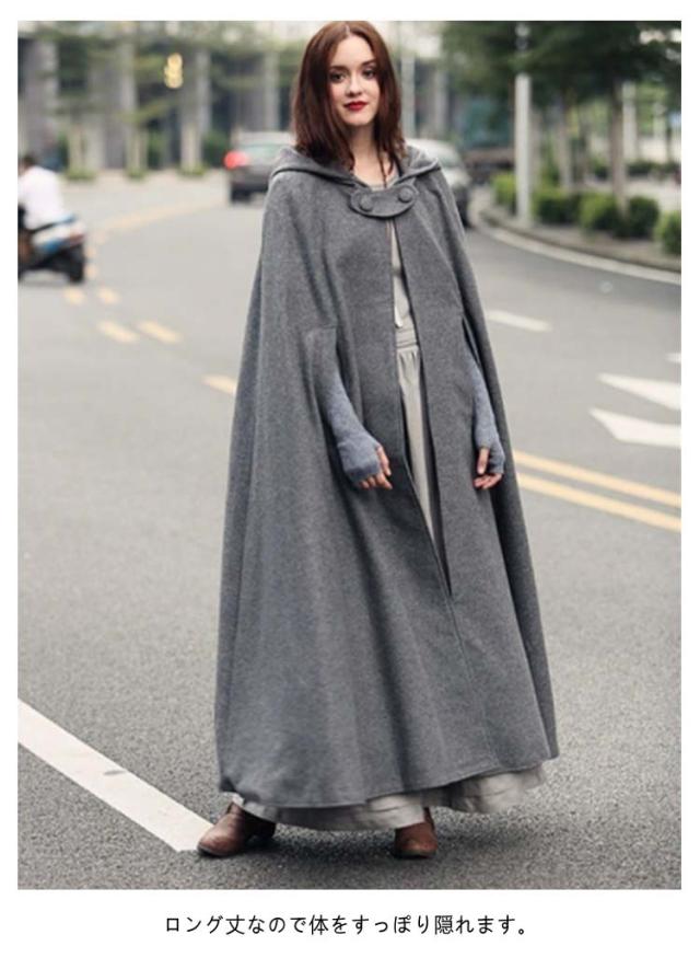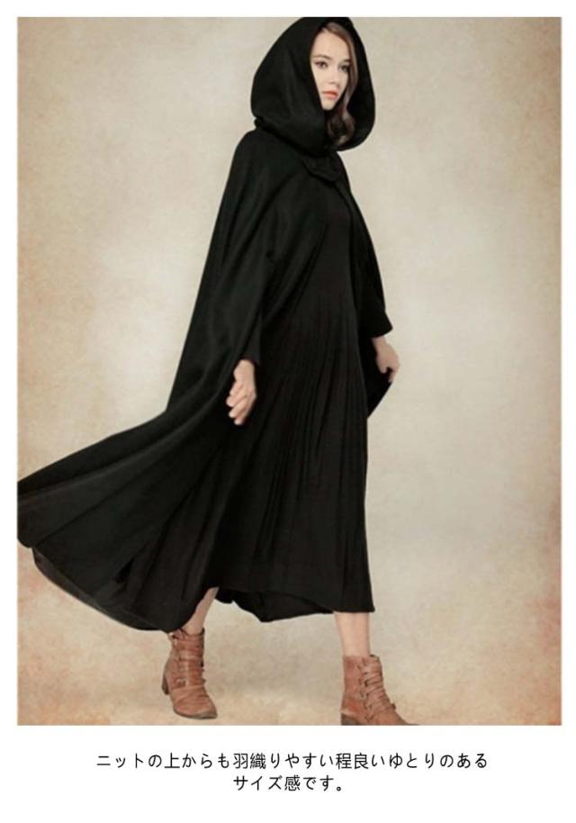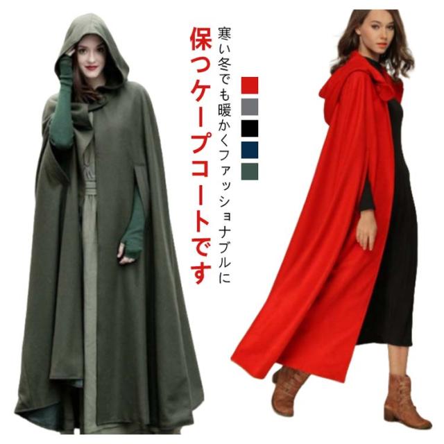 マキシ フード付き ロング 春 マキシ丈コート ケープコート マキシ丈 ポンチョコート ケープ Aライン マントコート コスチューム フレア 巫女 イベント 上品 大きサイズ 体型カバー マントコート 秋 冬 30代 40代 50代