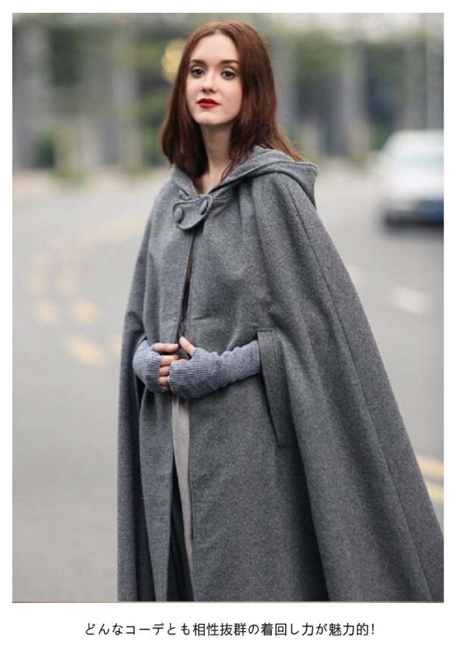 | 寒い冬でも暖かくファッショナブルに保つケープコートです。 ニットの上からも羽織りやすい程良いゆとりのあるサイズ感です。 どんなコーデとも相性抜群の着回し力が魅力的! ロング丈なので体をすっぽり隠れます。 たっぷり余裕のあるAラインで厚手のインナーを合わせてもごわつかずに着られるところも◎。 暖かさとおしゃれを兼ね備えた今年一番お薦めなitemです。 デイリーはもちろん、イベントやハロウィンパーティーでも使えそうなアイテムです。 | |