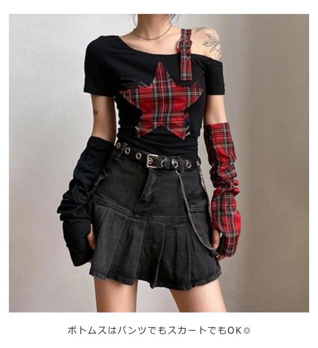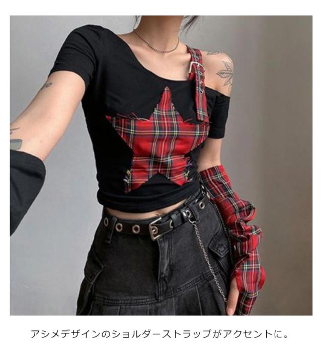 Tシャツ 半袖 レディース アームカパー付き 原宿 原宿系 病みかわいい トップス カットソー 地雷 地雷系 量産型 ファッション パンク ロック V系 シャツ ビッグシルエット オーバーサイズ 個性的 派手 薄手 ストレッチ ビジュアル系 ヴィジュアル系 ダンス衣装 送料無料
