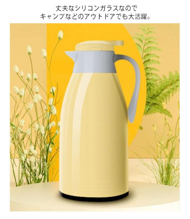 | 選べる1/1.6/1.9L! かわいいフォルムですが、立派な卓上ポットです 丈夫なシリコンガラスなのでキャンプなどのアウトドアでも大活躍。 幅広設計で洗浄しやすくいつでも清潔にお使いいただけます ワンタッチプッシュ開閉、冷・温どちらも対応 北欧テイストにベストマッチのカラーリングとデザインでテーブルでも生活の一部のようになじんでくれる | |