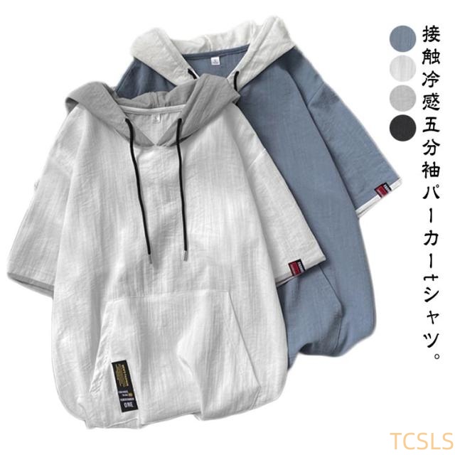 | 接触冷感五分袖パーカーtシャツ。 カジュアルになりすぎない配色デザインを採用。 涼しい着心地で夏でも快適にオシャレが楽しめる。 カジュアル、スポーツ、ストリートからモードまで幅広いコーデで活躍! | |