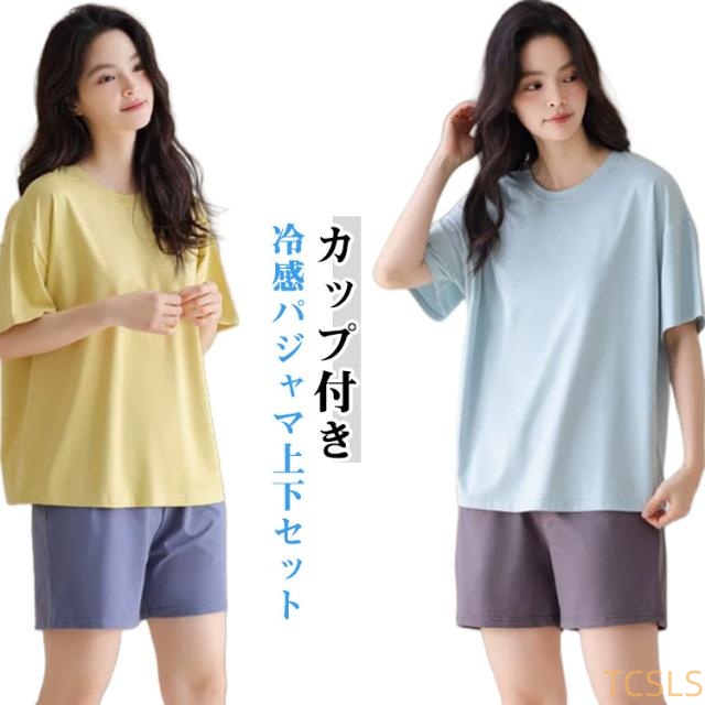 寝巻き カップ付き パジャマ 修学旅行 上下セット 夏 半袖 パジャマ シンプル 2点セット 部屋着 ルームウェア パンツ 女性パジャマ レディース モダール ゆったり 春夏 冷感 新生活 柔らかい 高校生 20代 30代