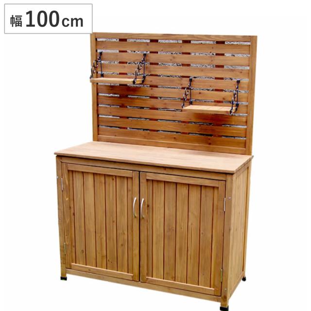 物置 パネル付収納庫 100 木製 ( 屋外物置 約 幅 100cm 木製物置 ベランダ 物置き 屋外収納 収納 ラック 収納棚 天然木 ガーデン ガレージ 庭用品 扉 ストッカー ガーデンストッカー パネル 棚付き おしゃれ )