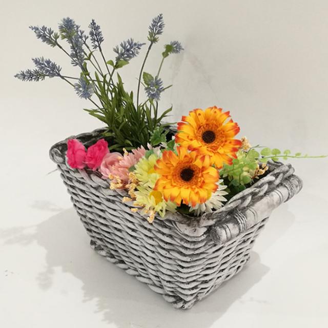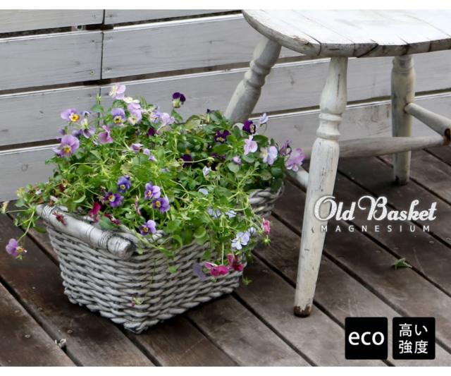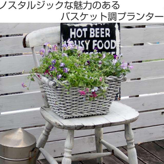 プランター バスケット調プランター 40 ( プランターカバー スクエア 植木鉢 鉢 底穴 屋外 外 家庭菜園 寄せ植え バスケット風 ポット 鉢カバー ナチュラル ホテル 鉢植え 屋内 長角型 長方形 大型 花 おしゃれ )
