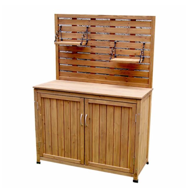 収納庫の天板は作業台として使えます。ガーデニング中の小物置き場にも大活躍します。