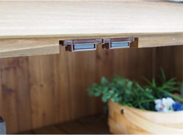 収納庫の扉の上下にマグネットが付いているので、しっかり閉めることができます。