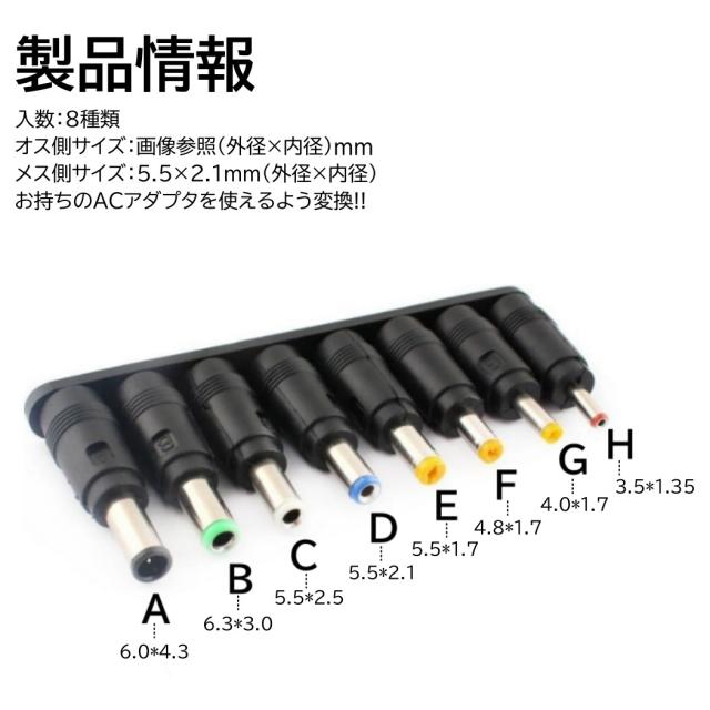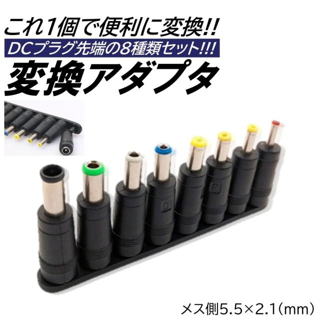 DCプラグ 変換 アダプター 8種類 汎用 ACアダプター パソコン テレビ スピーカー ACアダプタ 出力 DCジャック 5.5mm 2.1mm