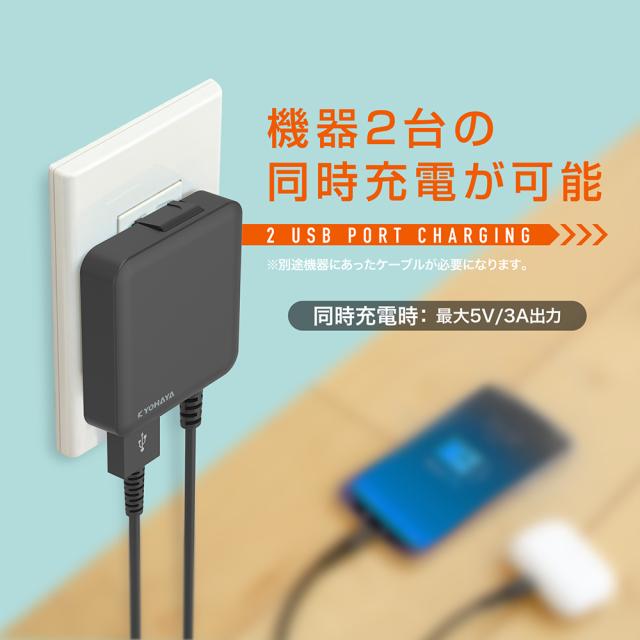 ※別途機器にあったケーブルが必要です。同時使用時は合計で5V/3Aの出力になり、急速充電にならない場合があります。 |