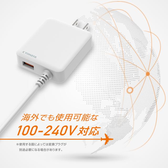 | 100-240Vの入力電圧に対応しており、海外旅行にも最適です。 ※使用する国によって別途変換プラグが必要になる場合があります。 |