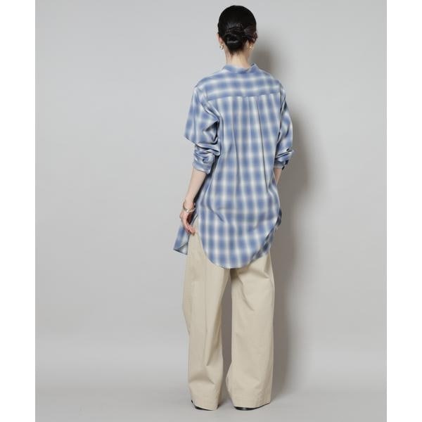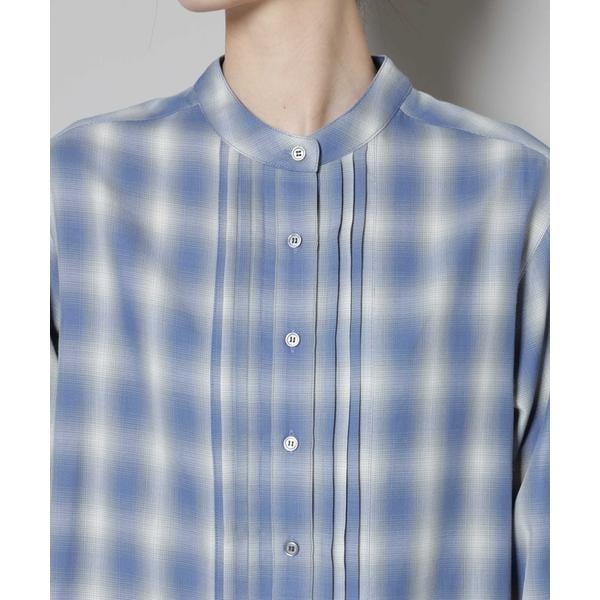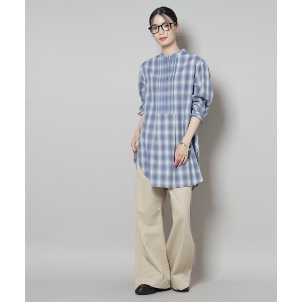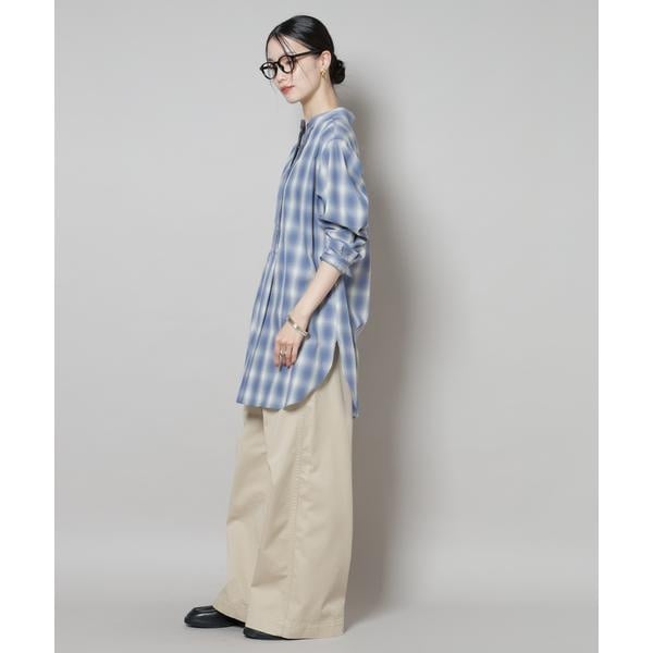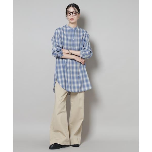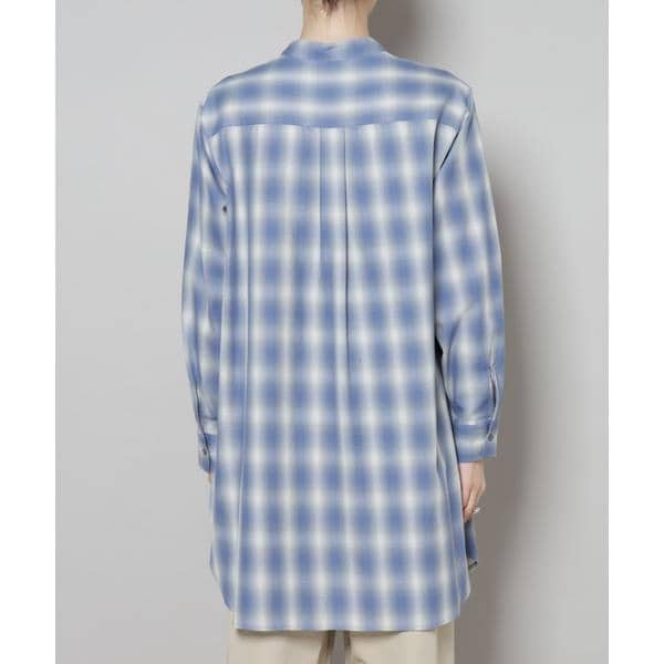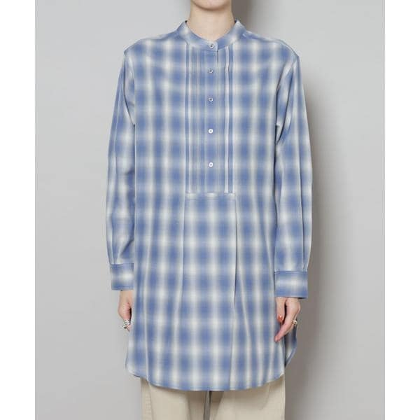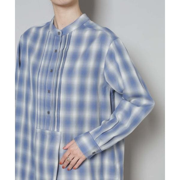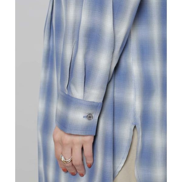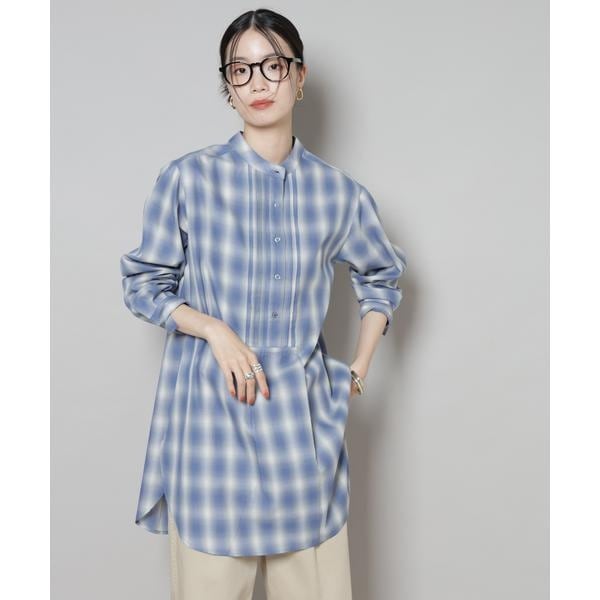 フロントに施されたピンタックと、オンブレーチェックが目を引くプルオーバーブラウス。ゆったりと着用できる着丈長めのデザインで、上にニットやカーディガンを合わせて裾を見せるレイヤードも素敵です。