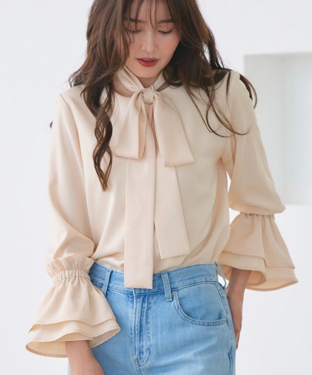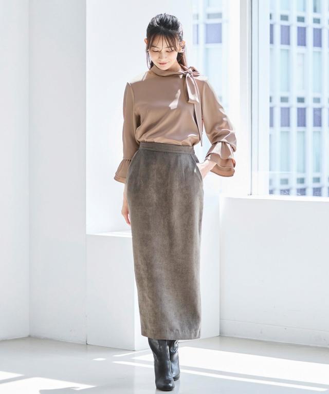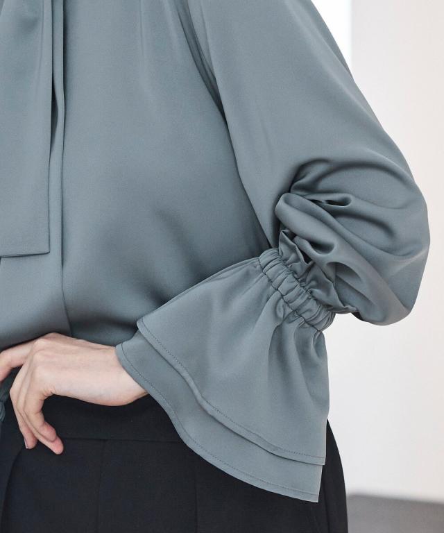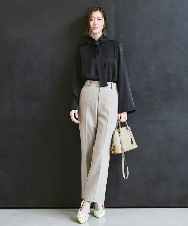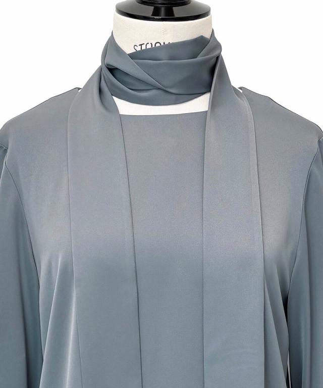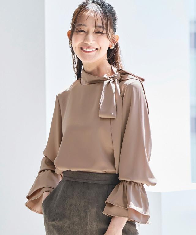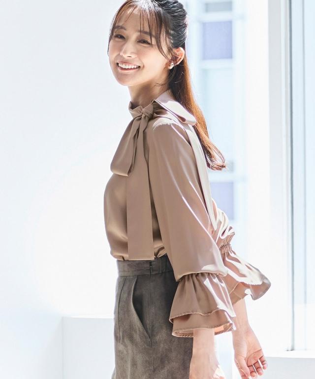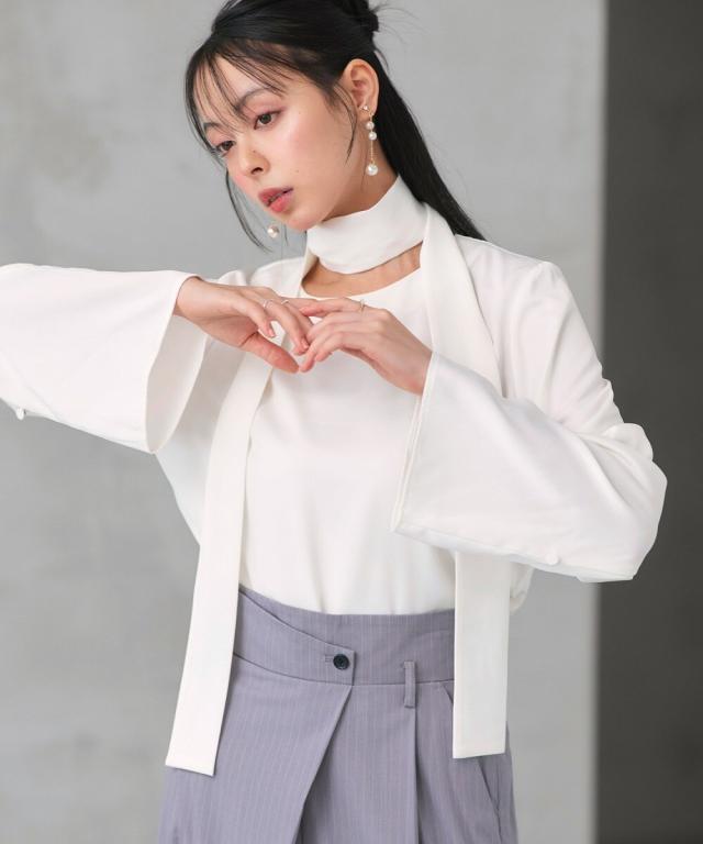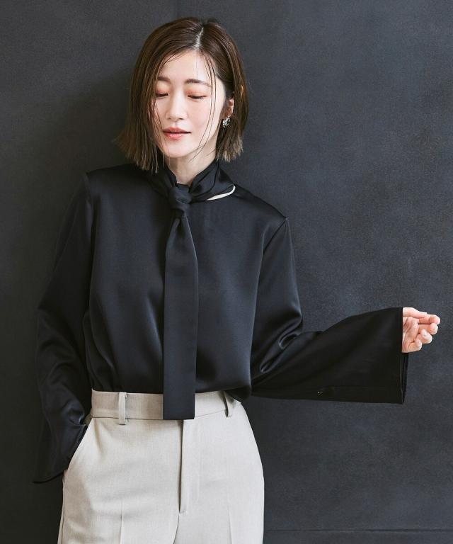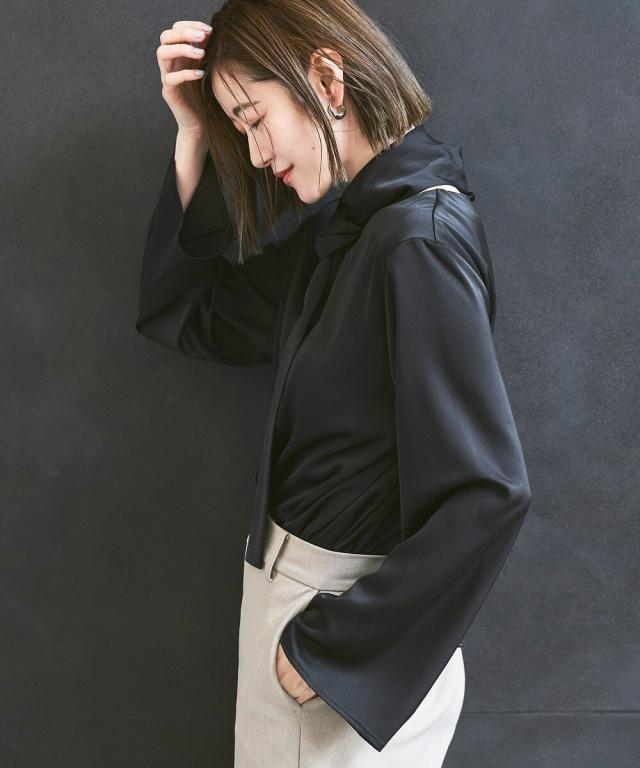 柔らかく体形をカバー。ボウタイ/カフスをプラスすれば、