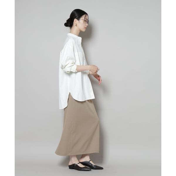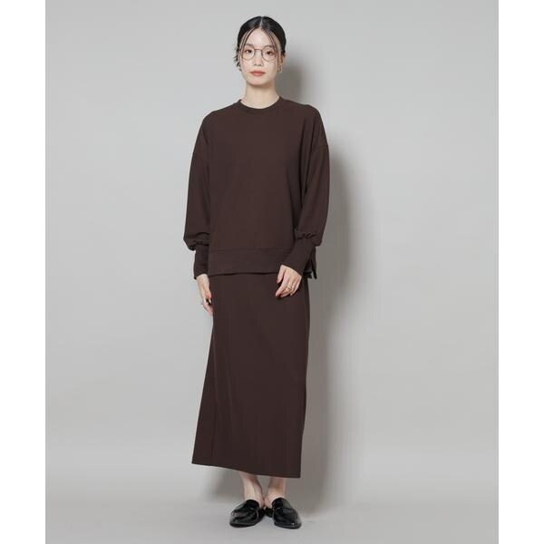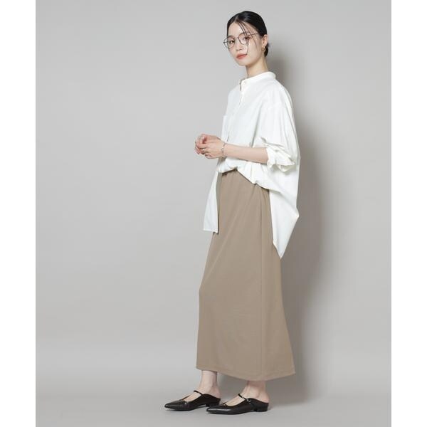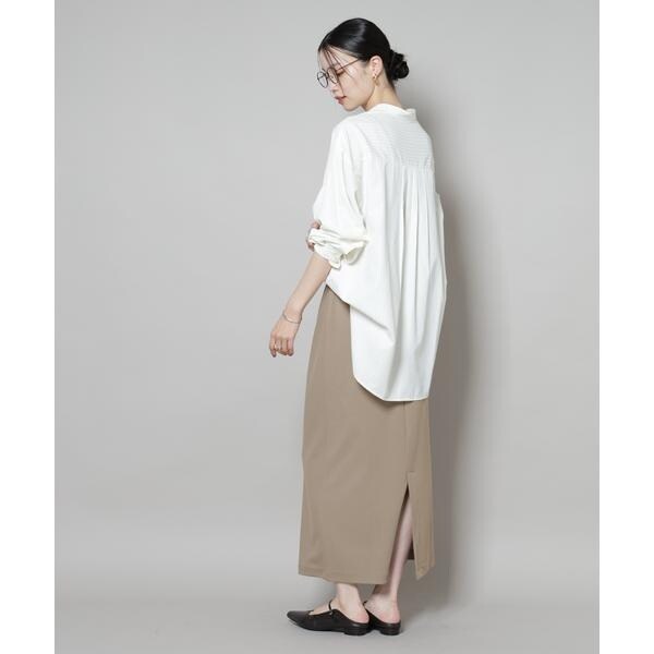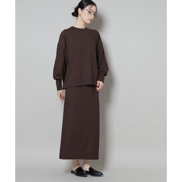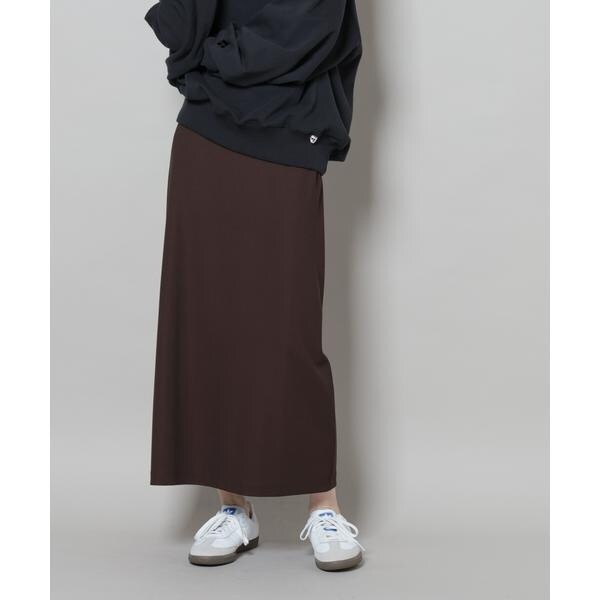 タイトなIラインシルエットが上品な印象のナロースカート。さらっとした肌触りとハリのある素材が上品な表面感で、綺麗めな印象を与えてくれるサカリバカットソー素材で仕立てた一着です。