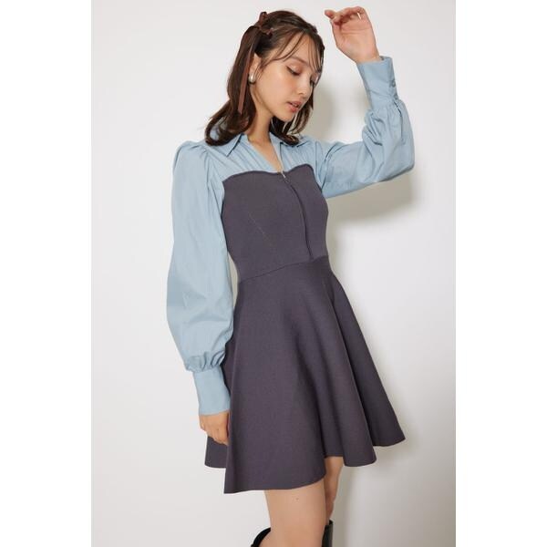 シャツドッキングフレアニットミニワンピース