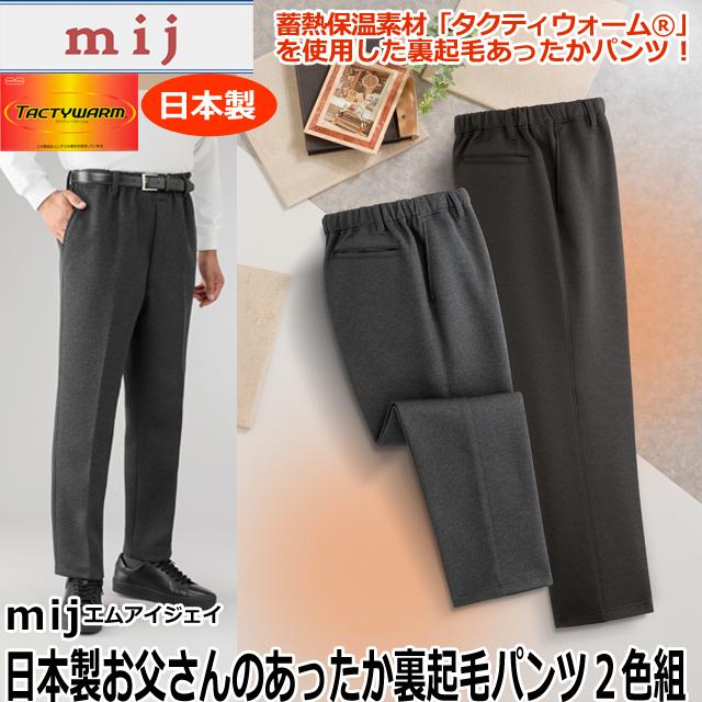 敬老の日 mij(エムアイジェイ)日本製お父さんのあったか裏起毛パンツ2色組 秋冬 メンズ 男性用 紳士用 防寒 裾上げ不要 ベルトループ付 大人カジュアル