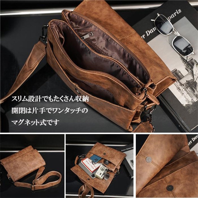 ショルダーバッグ メンズ 小さめ スリム 肩掛け シンプル PUレザー レトロ 通勤 通学 ビジネス かばん B5サイズ スマホ入れ タブレット入れ プレゼント 爆買 送料無料