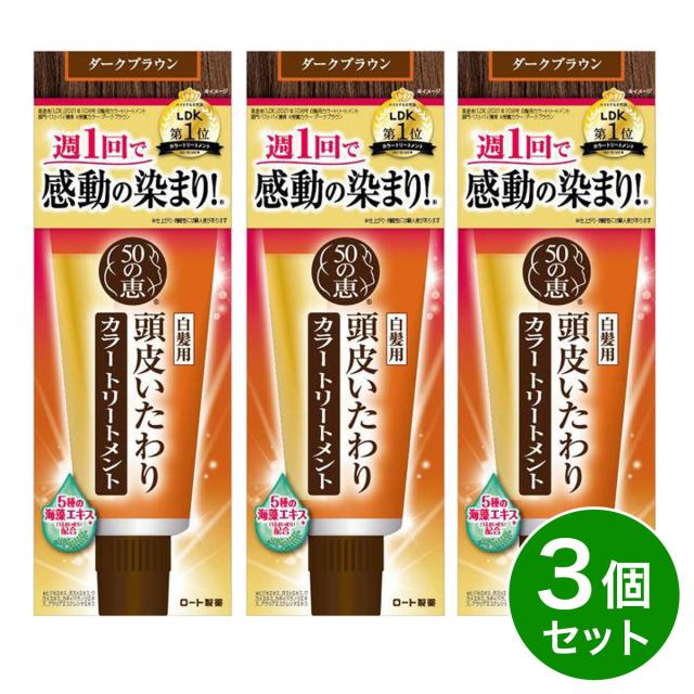 【まとめ買い】ロート製薬 50の恵 頭皮いたわりカラートリートメント ダークブラウン 150g×3個セット ヘアカラー トリートメント 白髪 白髪染め
