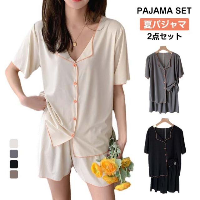 レディース ルームウェア 上下セット 半袖 パジャマ 2点セット 部屋着 レディース 前開き パジャマ 夏 半袖トップス ショートパンツ 短パン パジャマ ルームウェア 薄手 快適 入院 レディースパジャマ 体型カバー送料無料