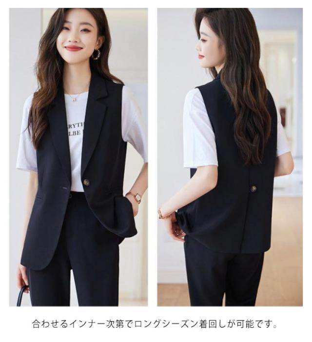 ジレ ベスト レディース スーツ テーラード ベスト ロングジレ ノースリーブ ジャケット 春 夏 薄手 スリム スーツベスト サマージャケット 通勤 カジュアル オフィス 大人 無地 裏地付き 秋 20代 30代 40代 50代 きれいめ 【送料無料】