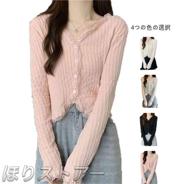 Vネックカーディガン レディース 春夏 ショートカーディガン レースカーディガン 体型カバー フェミニン トップス おしゃれカーディガン アウター カーディガン 大人 フリルカーディガン プリーツカーディガン 無地 シンプル カジュアル おしゃれ 送料無料