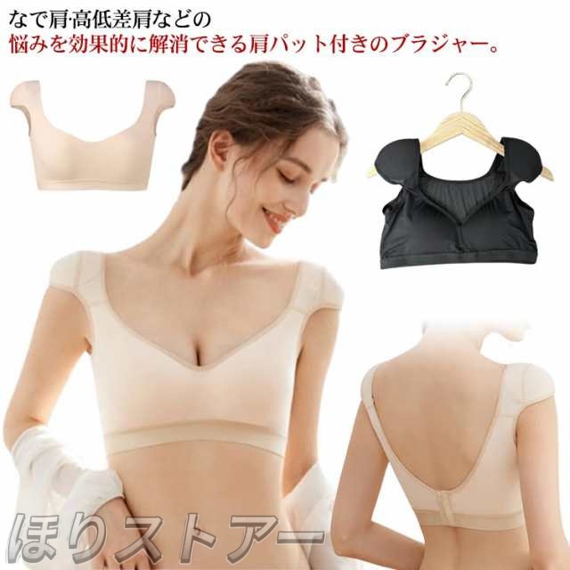 肩パッド付き ブラジャー ブラ レディース 肩パッド付きブラ ノンワイヤー ブラ インナー フレンチスリーブ Tシャツブラ Vネック 補正下着 なで肩 対策 高低差 肩対策 脇肉 脇高 背中 スッキリ 無地 ストレッチ バックメッシュ