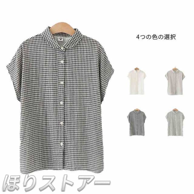 送料無料 シャツ ブラウス シャツブラウス フレンチスリーブ レディース ガーゼ シャツ 夏シャツ 無地 ホワイト グレー チェック柄 ストライプ柄 シンプル 綿 コットン 通気 カジュアル きれいめ おしゃれ 人気 春 夏 S/M/L