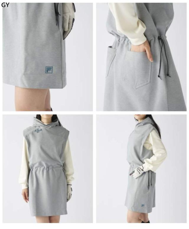 フィラ ゴルフ レディース パーカーベストワンピース ゴルフウェア トップス ブラック 黒 グレー 灰色 送料無料 FILA GOLF 795460
