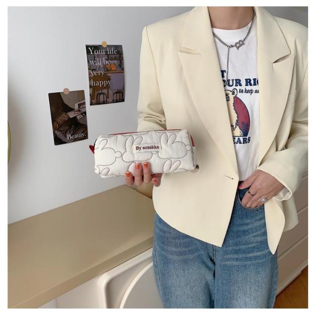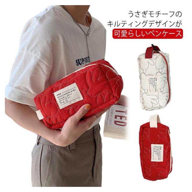 中学生 大容量 ペンケース 筆箱 キルティング ウサギ 文房具 新学期 大人 ふでばこ 韓国 文具 整理整頓 ペンポーチ ペン入れ おしゃれ 大学生 中学生 高校生 ふで箱 スリム オフィス 女性 入学 入学祝い ギフト 誕生日 かわいい