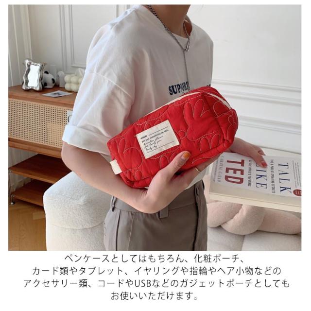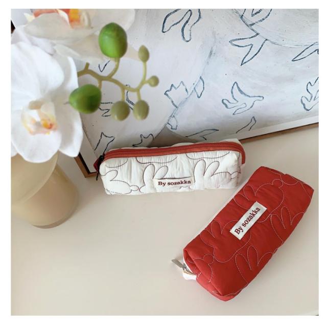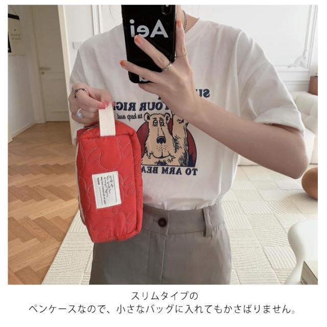 | うさぎモチーフのキルティングデザインが可愛らしいペンケース。 ペンや定規などの文房具が収納できる、大容量のペンケース。 スリムタイプのペンケースなので、小さなバッグに入れてもかさばりません。 ペンケースとしてはもちろん、化粧ポーチ、カード類やタブレット、イヤリングや指輪やヘア小物などのアクセサリー類、コードやUSBなどのガジェットポーチとしてもお使いいただけます。 | |