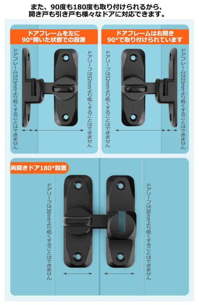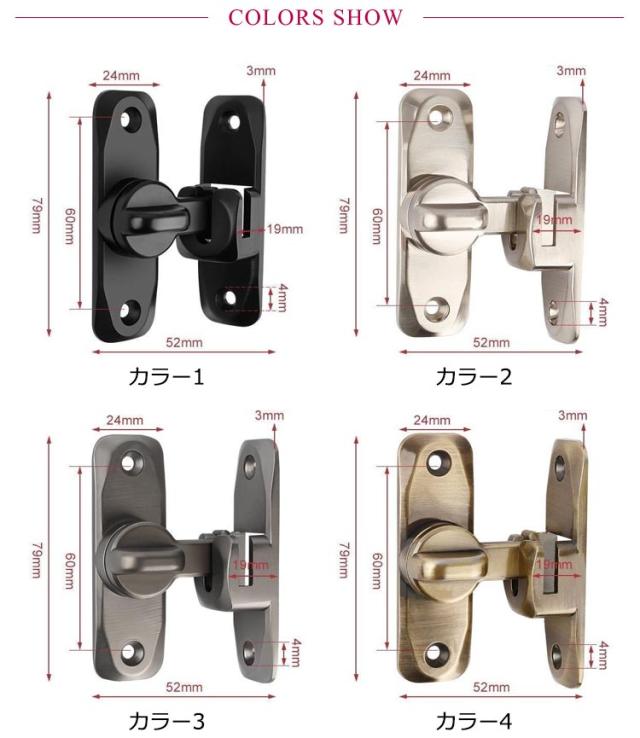 90度/180度 ドアロック 室内ドア 後付け 鍵 ロックドア 鍵玄関ドア 回転式 窓 扉 後付け 鍵 兼用 ドアバックル 亜鉛合金 ドア留め金ロック フリップラッチロック 引き戸用鍵 スライドロック 窓ロック とびらロック 部屋