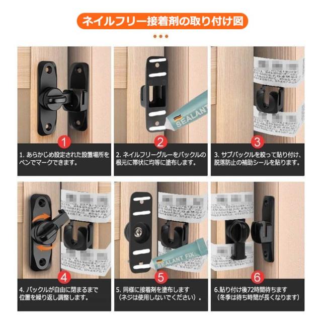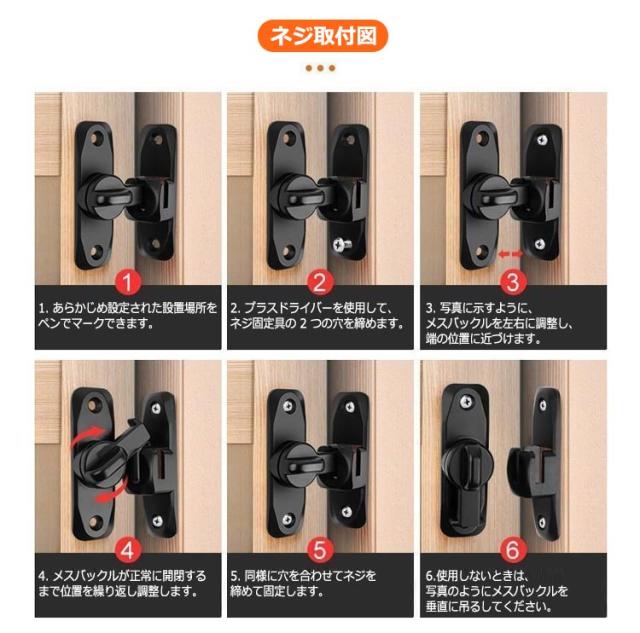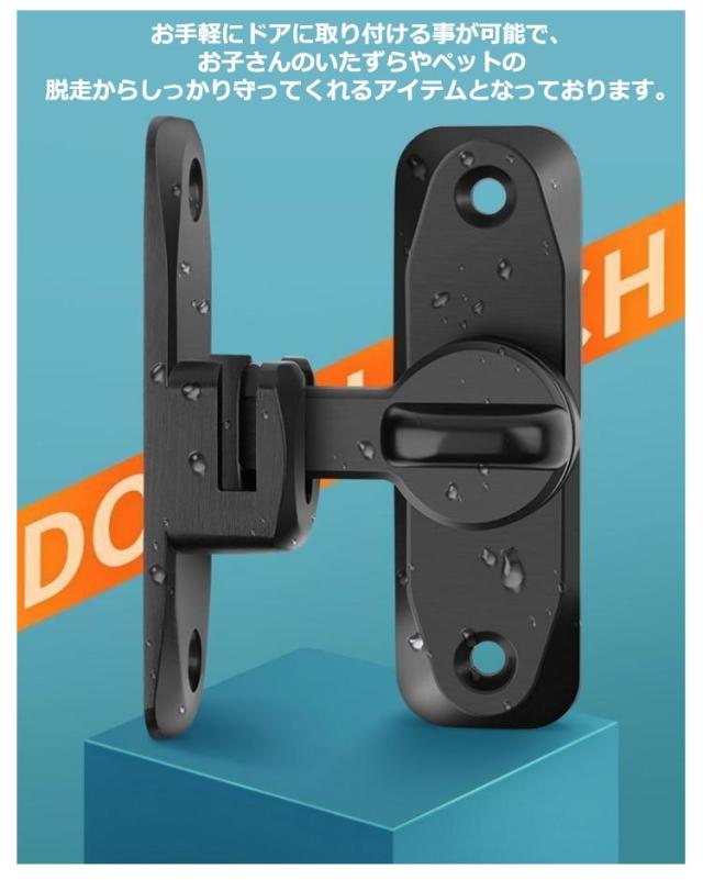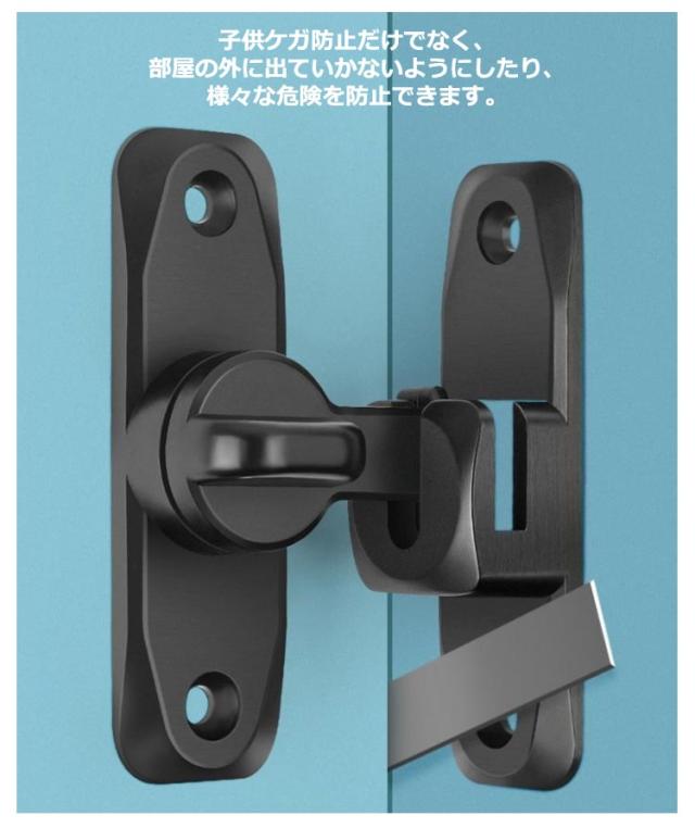 | ドアや窓のセキュリティーに役立つ後付けドアロック。【回転式90°と180°の両用】 ねじでしっかり固定するタイプですので、丈夫で長持ちとなっております。 お手軽にドアに取り付ける事が可能で、お子さんのいたずらやペットの脱走からしっかり守ってくれるアイテムとなっております。 また、90度も180度も取り付けられるから、開き戸も引き戸も様々なドアに対応できます。 子供ケガ防止だけでなく、部屋の外に出ていかないようにしたり、様々な危険を防止できます。 防犯用、部屋のトイレの鍵、追加用の内鍵、部屋のドアに付け。プライバシーを守りながら、学生や独身者に向いている。防犯対策の安全 ロックです。 簡単施錠でスライドドアの防犯対策ができます。猫の脱走防止用としてもお使いいただけます。 | |