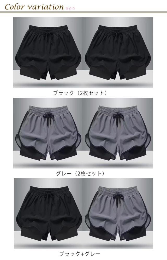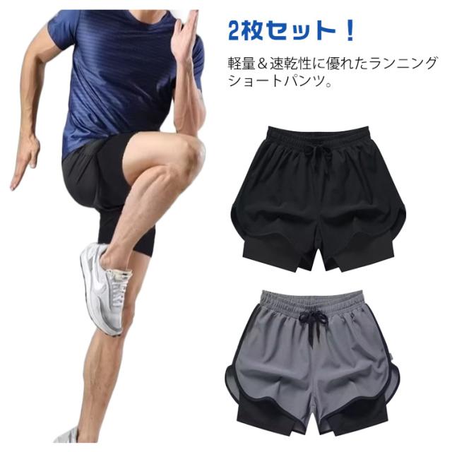 ジムウェア 半ズボン 春 ランニングパンツ メンズ ハーフパンツ スポーツウエア ショートパンツ 2枚セット タイトフィット インナー付き ショーパン トレーニングウェア 通気 吸汗速乾 短パン 夏 バスケパンツ ランパン スパッツ 練習